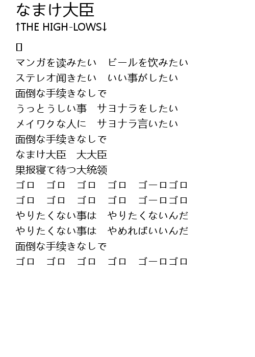 | 歌手 | ↑THE HIGH-LOWS↓ |