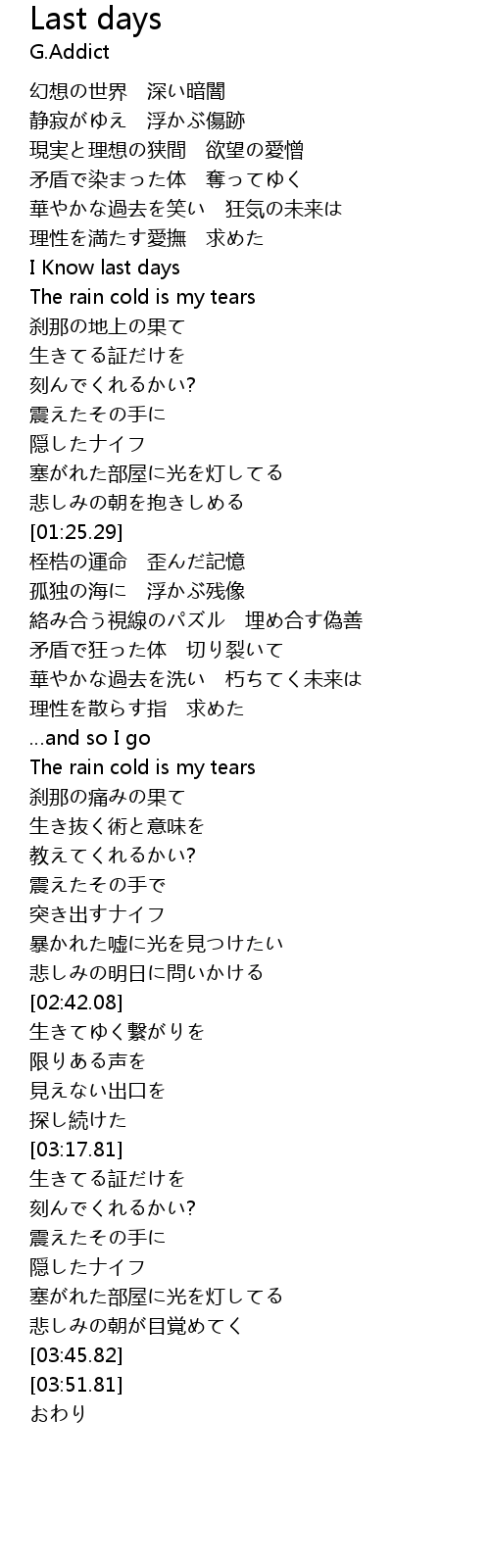 | [00:38.69] | 華やかな過去を笑い 狂気の未来は |