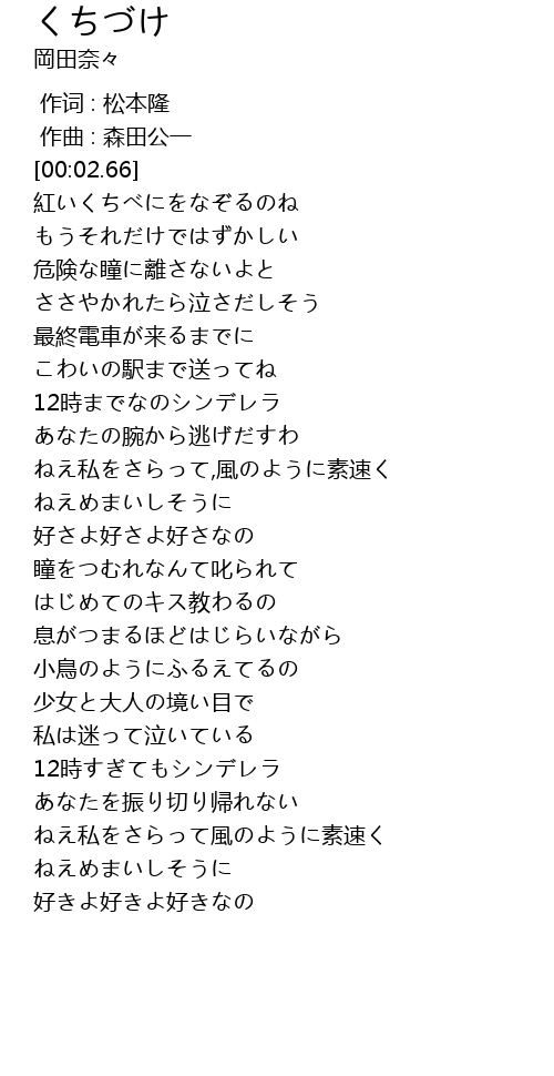 | [00:52.79] | 12時までなのシンデレラ |