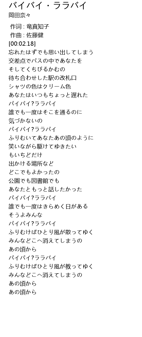| [01:18.59] | ふりむいてあなたあの頃のように |