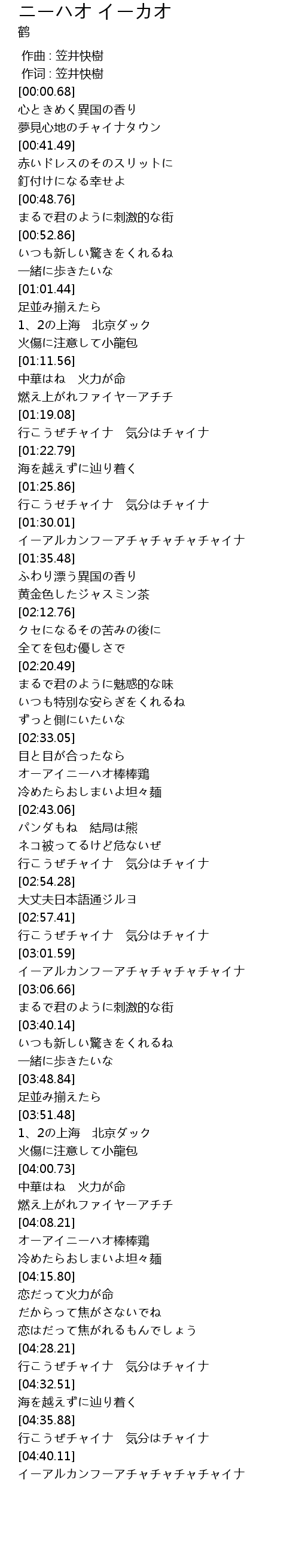 | [04:29.48] | 行こうぜチャイナ 気分はチャイナ |
