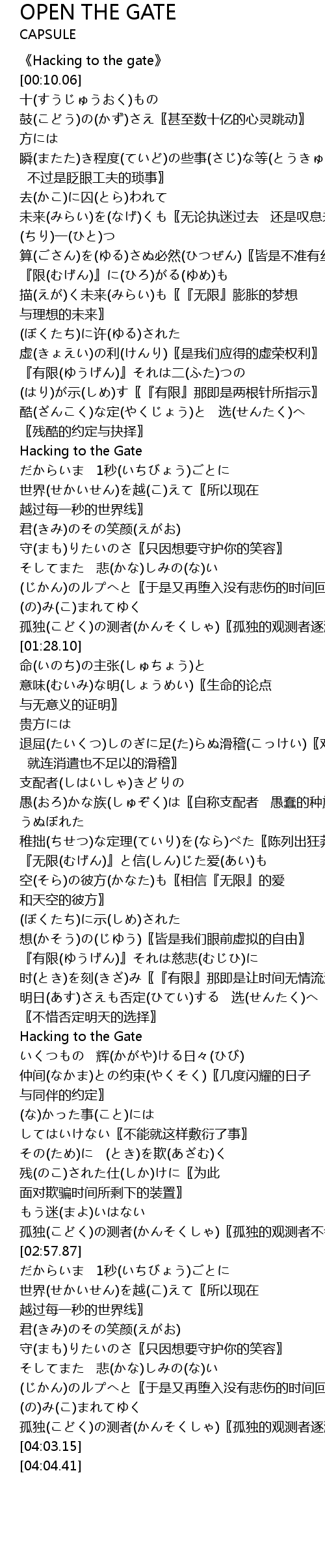 | [01:00.17] | Hacking to the Gate |