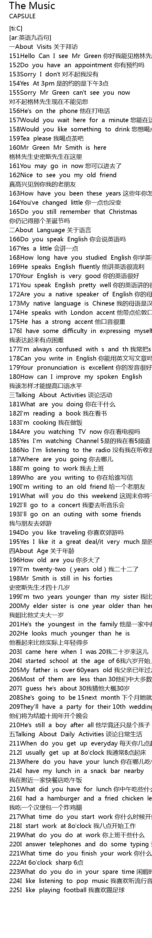 | [02:35.106] | 178Can you write in English 你能用英文写文章吗 |
