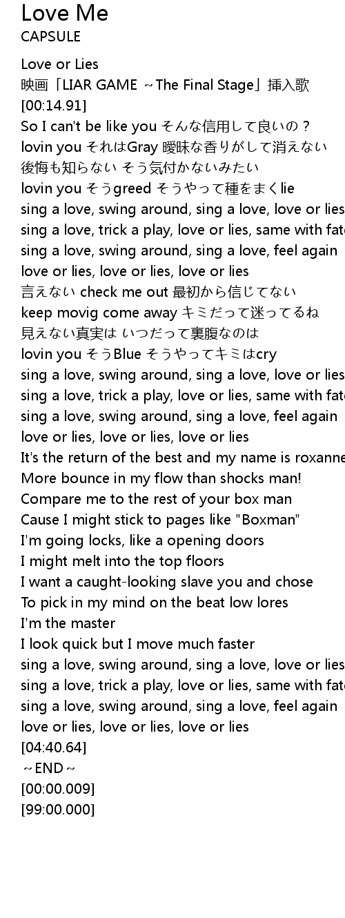 | [04:01.37] | love or lies, love or lies, love or lies |
