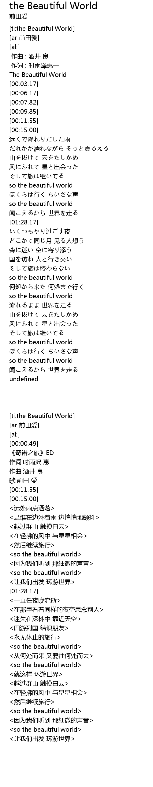 | [ti:the Beautiful World] | |
