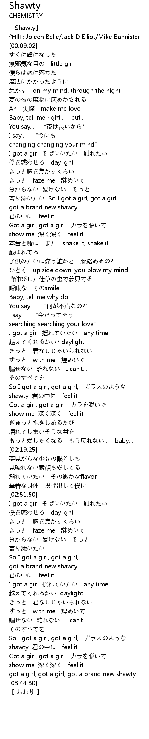 | [03:40.95] | got a girl, got a girl, got a brand new shawty |