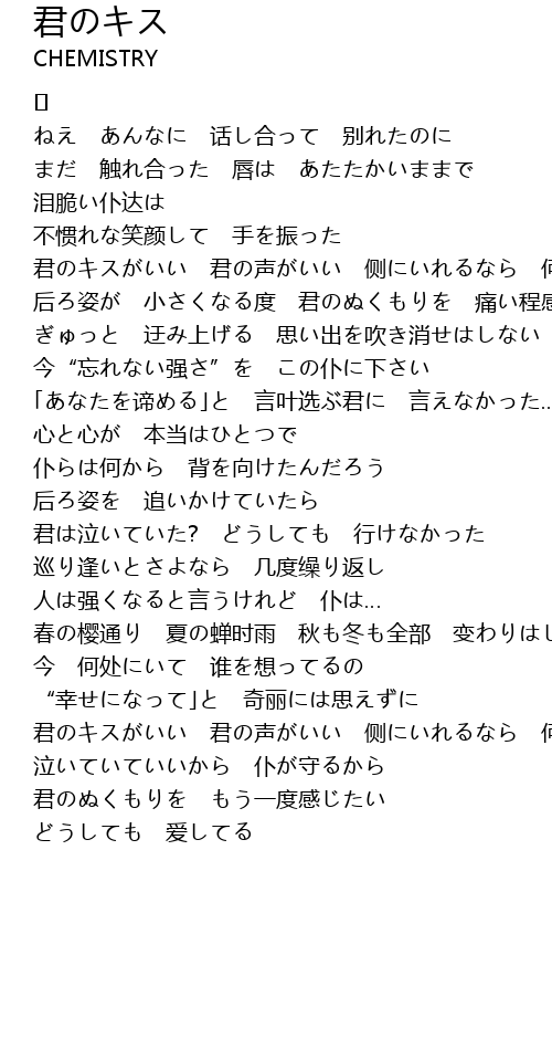| 君のキスがいい 君の声がいい 侧にいれるなら 何も要らないよ | |