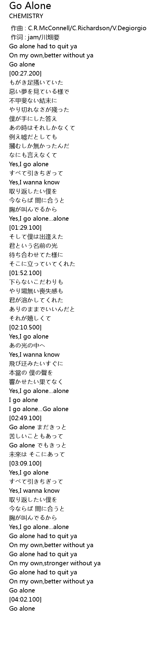 | [04:01.100] | Go alone |