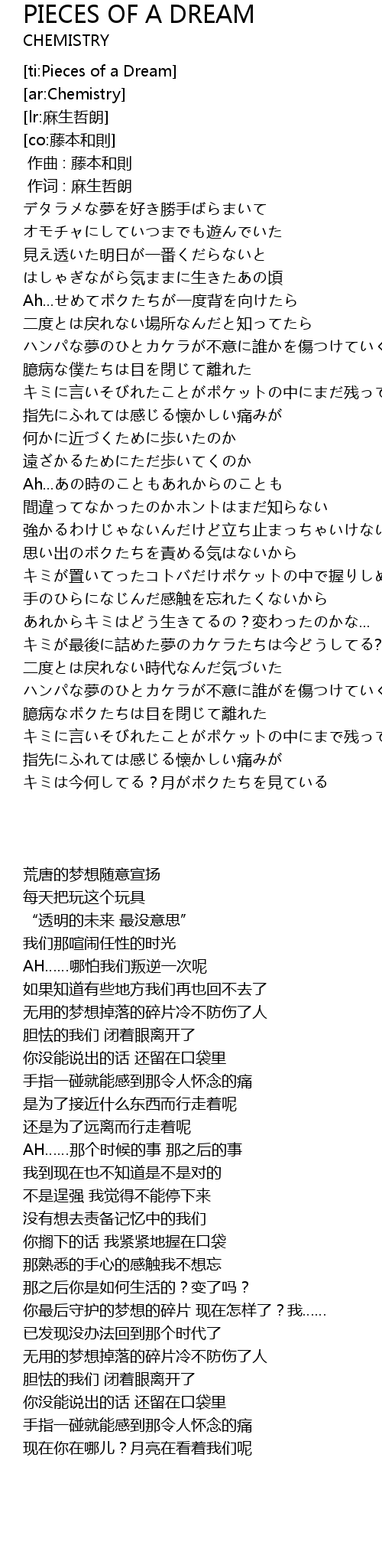 | [03:27.304] | キミが最後に詰めた夢のカケラたちは今どうしてる?ボクは |