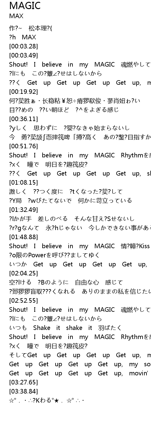 | [00:52.77] | Shout! I believe in my MAGIC Rhythmを感じて |