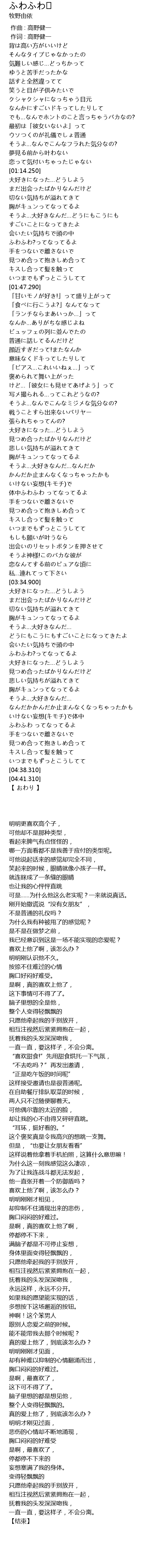 | [04:04.010] | ふわふわ?ってなってるよ |
