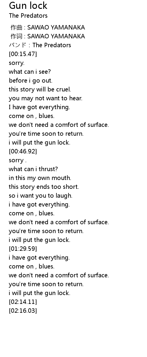 | [00:01.00] | 作词 : SAWAO YAMANAKA |