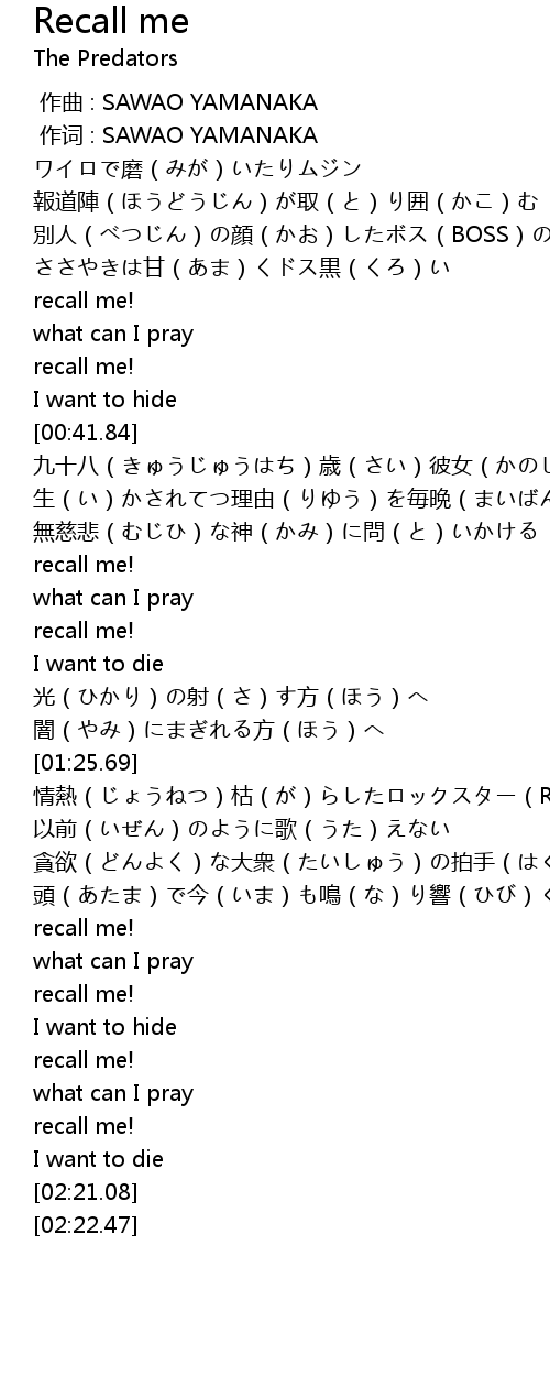 | [00:01.00] | 作词 : SAWAO YAMANAKA |