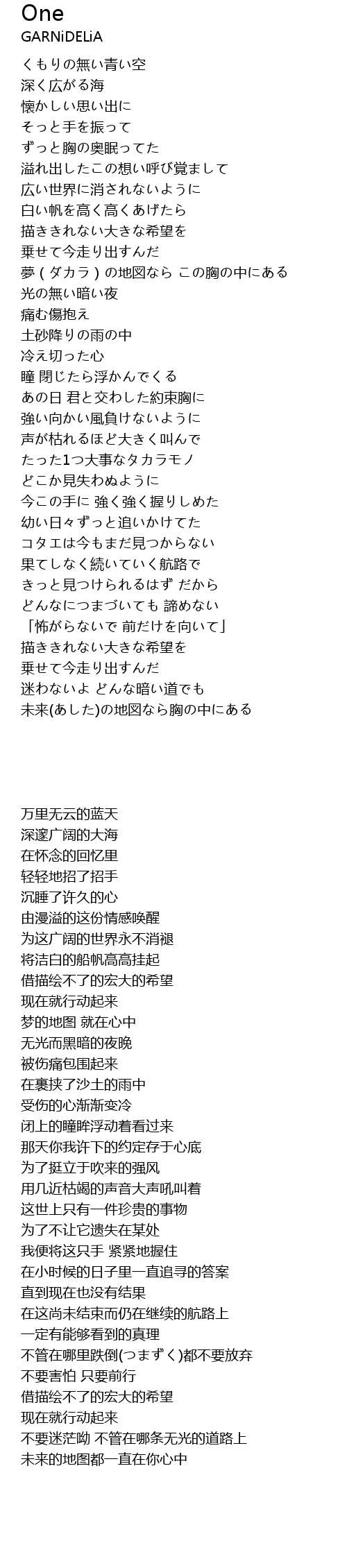 | 歌曲 | One |