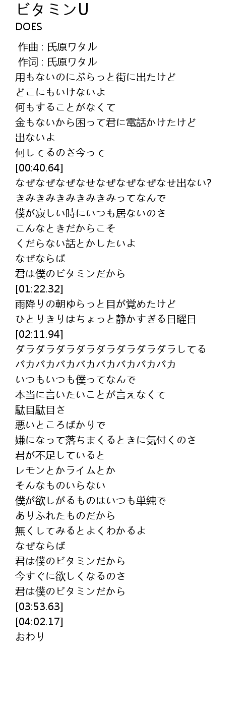 作词 : 氏原ワタル |
