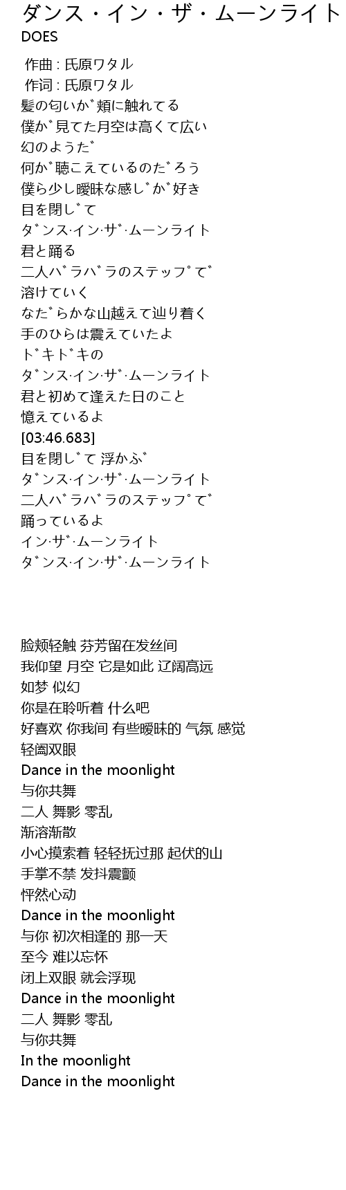 | [05:07.252] | ダンス·イン·ザ·ムーンライト |