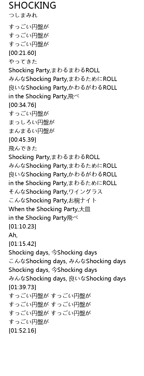 | [01:21.57] | こんなShocking days, みんなShocking days |