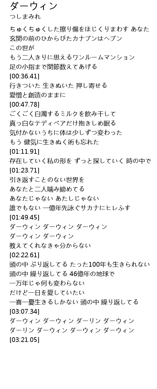| [03:08.26] | ダーウィン ダーウィン ダーリン ダーウィン |