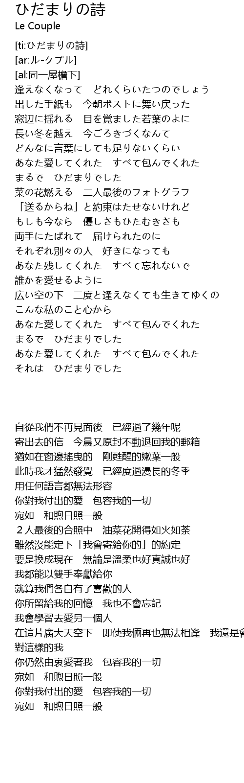 | [ti:ひだまりの詩] | |