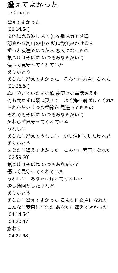 | [00:00.93] | 逢えてよかった |