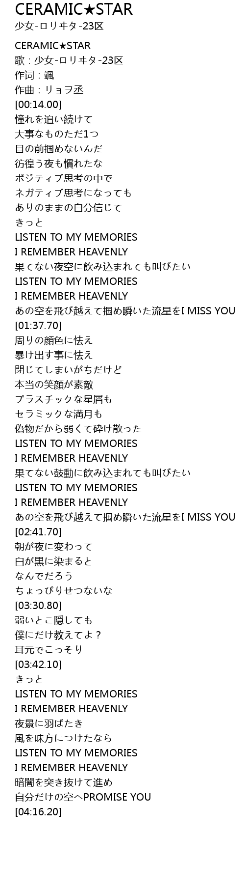 | [02:14.23] | LISTEN TO MY MEMORIES |