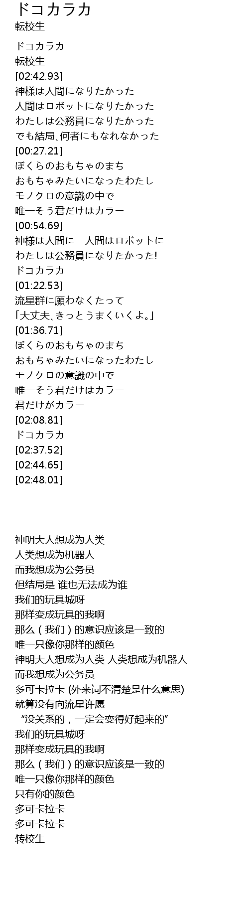 | [01:08.51] | 多可卡拉卡 (外来词不清楚是什么意思) |