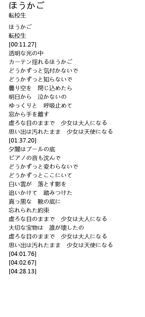 | [03:33.31] | 虚ろな目のままで 少女は大人になる |