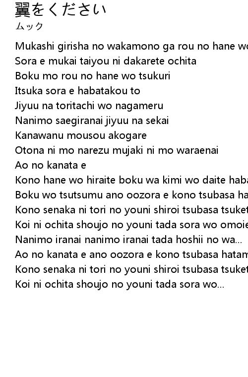Kono senaka ni tori no youni shiroi tsubasa tsukete kudasai |