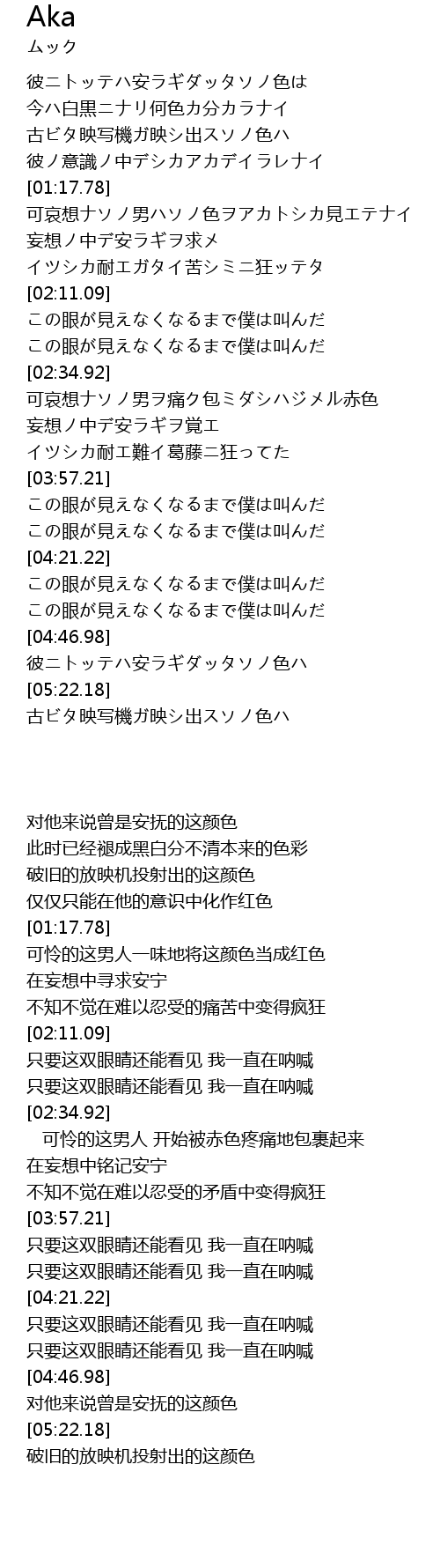 | [01:42.61] | 可哀想ナソノ男ハソノ色ヲアカトシカ見エテナイ |