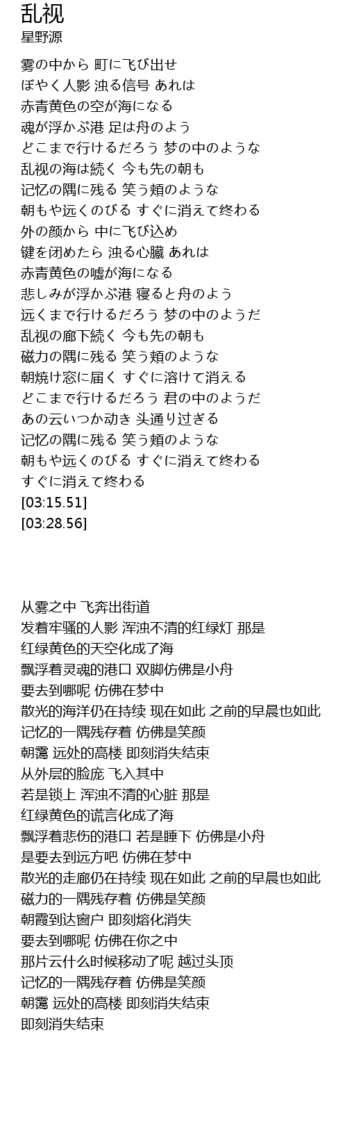 | [00:44.02] | 乱视の海は続く 今も先の朝も |