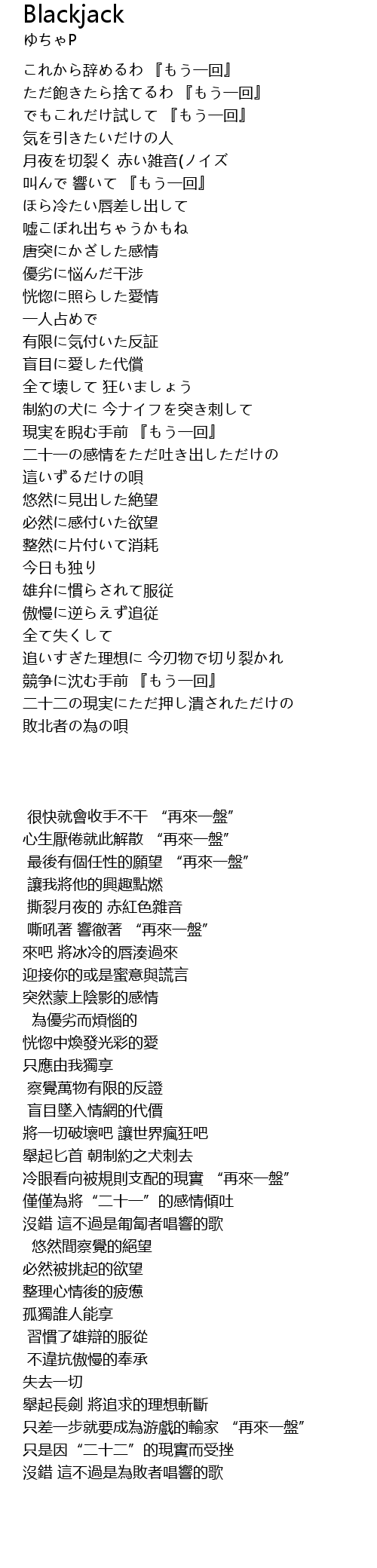 | [00:36.10] | 嘶吼著 響徹著 “再來一盤” |