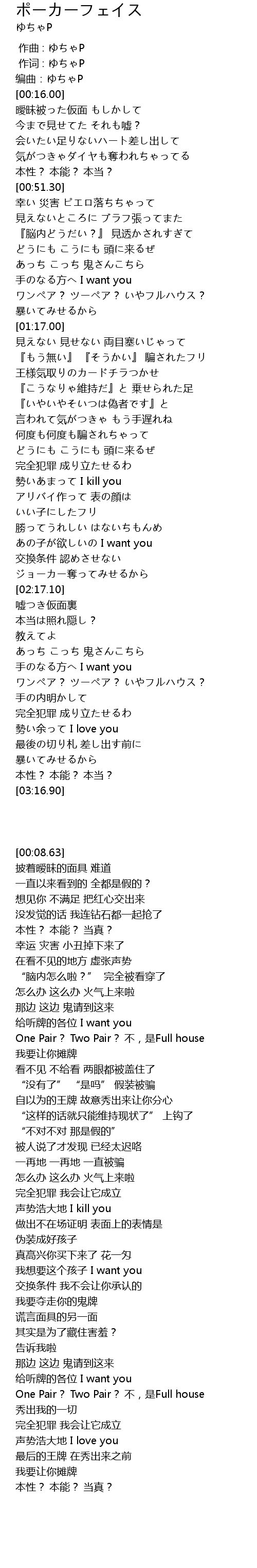 | [02:13.48] | 我要夺走你的鬼牌 |