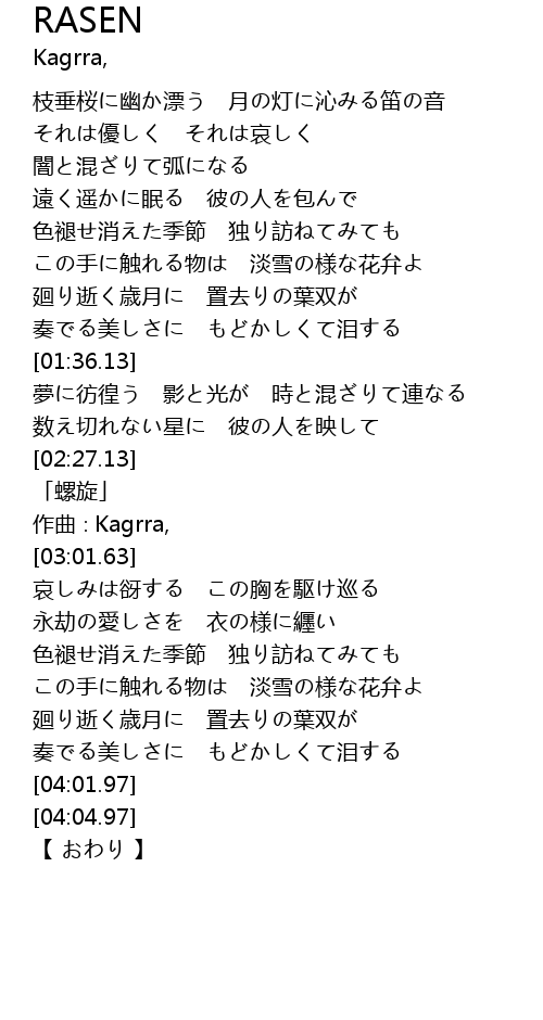 | [02:36.63] | zuo qu Kagrra, |