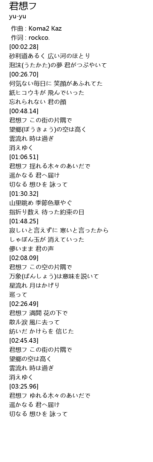 | [03:26.06] | 君想フ ゆれる木々のあいだで |