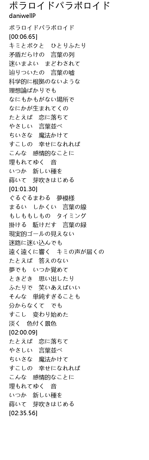 | [00:16.41] | 矛盾だらけの 言葉の列 |