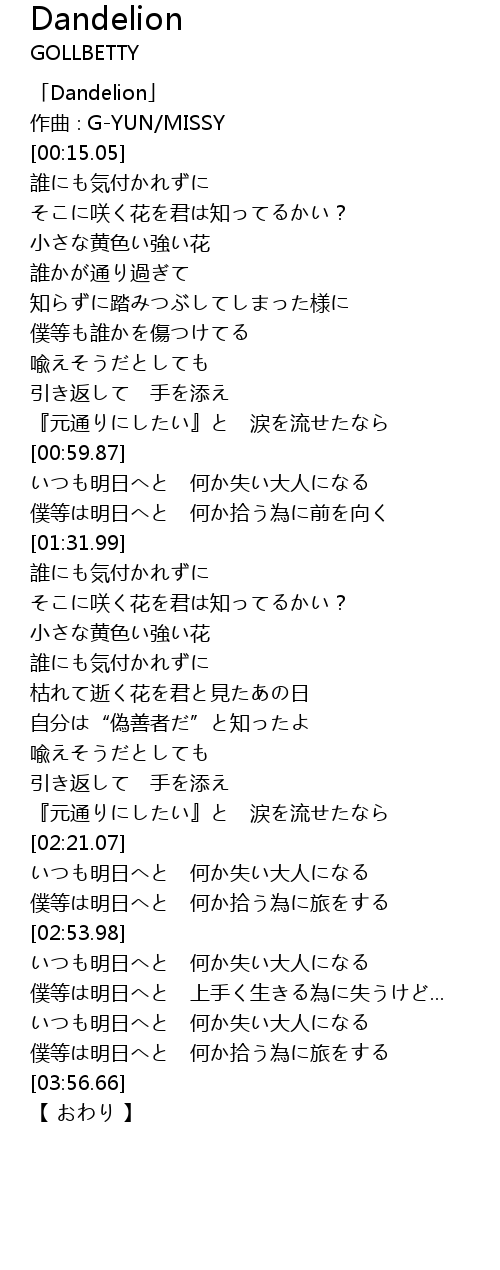 | [00:01.05] | 「Dandelion」 |