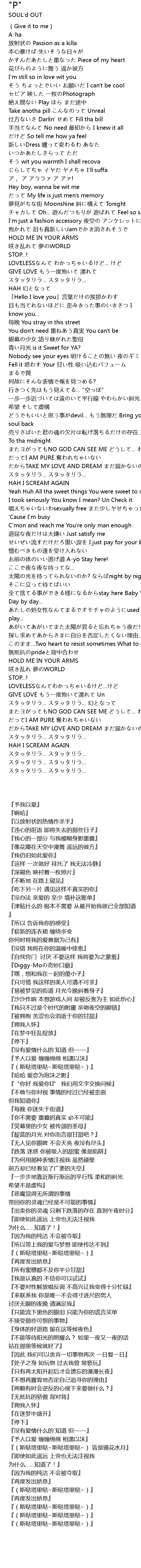 | [00:21.72] | 放射状の Passion as a killa |
