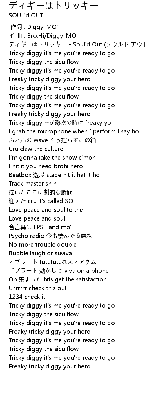 | [00:00.00] | ディギーはトリッキー - Soul'd Out (ソウルド アウト) |