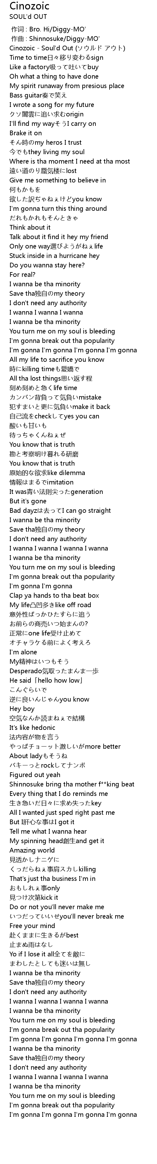 | [00:00.04] | Cinozoic - Soul'd Out (ソウルド アウト) |