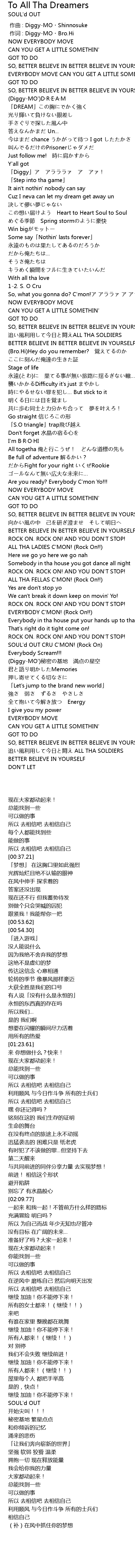 | [04:01.14] | 追い風利用して今日と闘え ALL THA SOLDIERS |