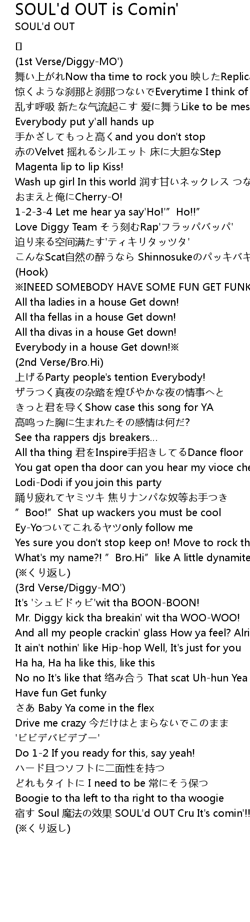 | 宿す Soul 魔法の效果 SOUL'd OUT Cru It's comin'!! | |