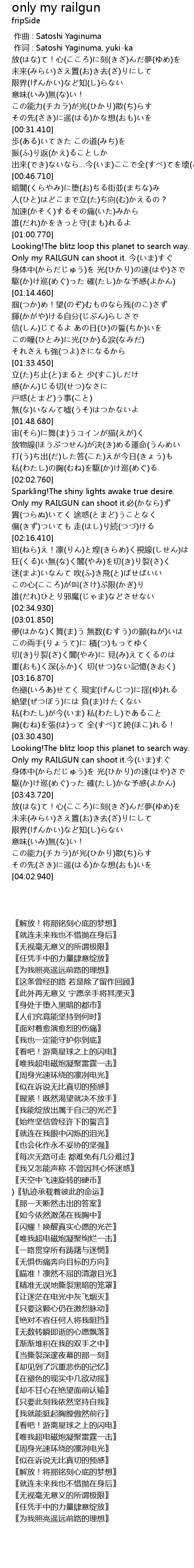 | 歌曲 | only my railgun |