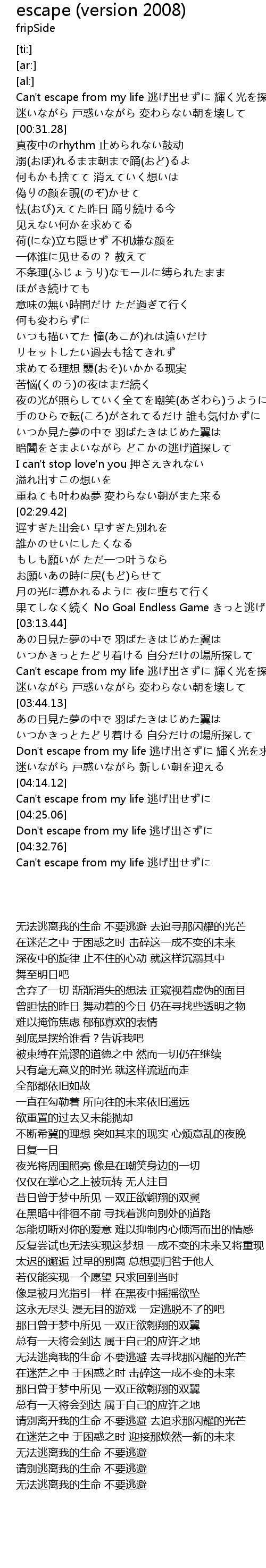 | [04:20.74] | 无法逃离我的生命 不要逃避 |