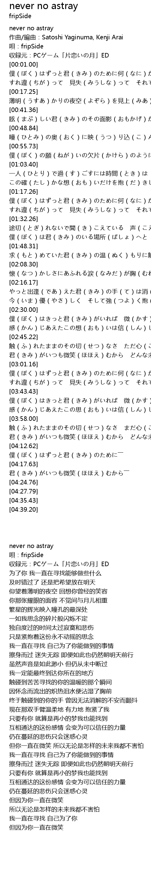 | [00:00.80] | 収録元:PCゲーム「片恋いの月」ED |