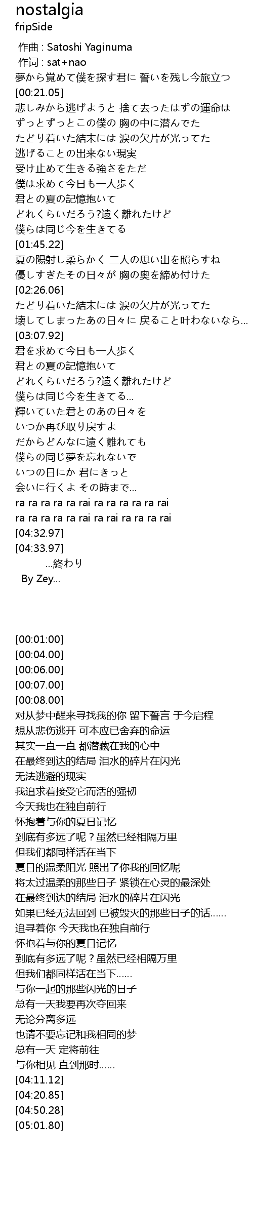 | 歌曲 | nostalgia |