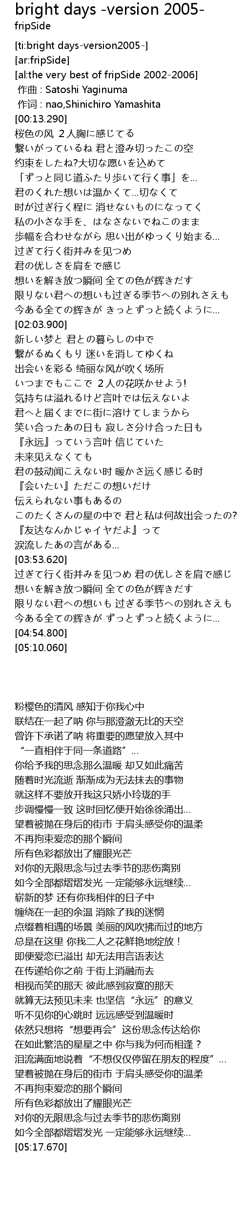 | [00:01.00] | zuo ci : nao, Shinichiro Yamashita |
