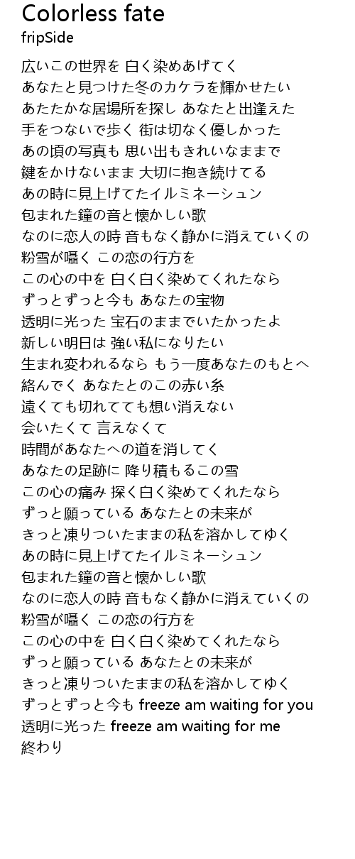 | [05:08.58] | ずっとずっと今も freeze am waiting for you |
