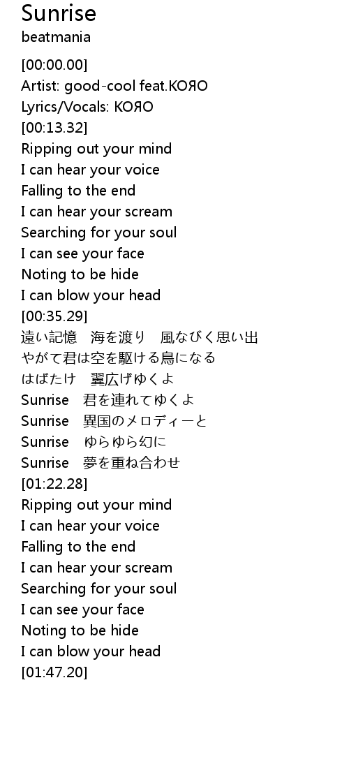 | [01:11.62] | Sunrise ゆらゆら幻に |