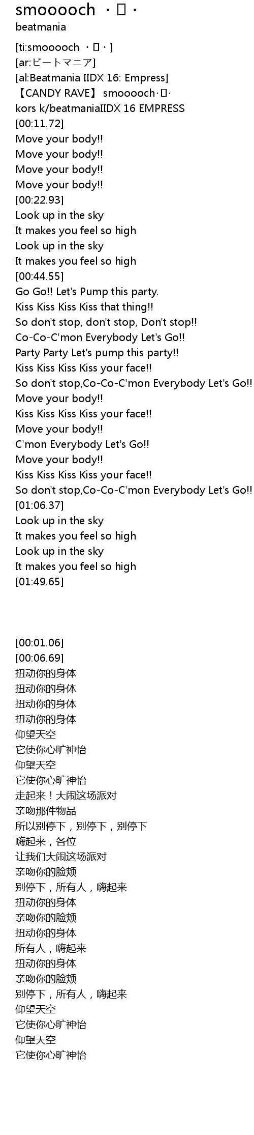 | [01:02.21] | Kiss Kiss Kiss Kiss your face!! |