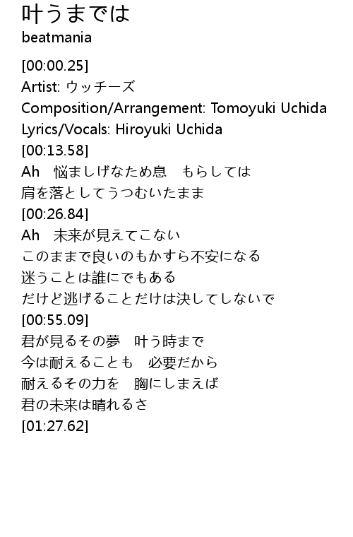 | [00:56.19] | 君が見るその夢 叶う時まで |